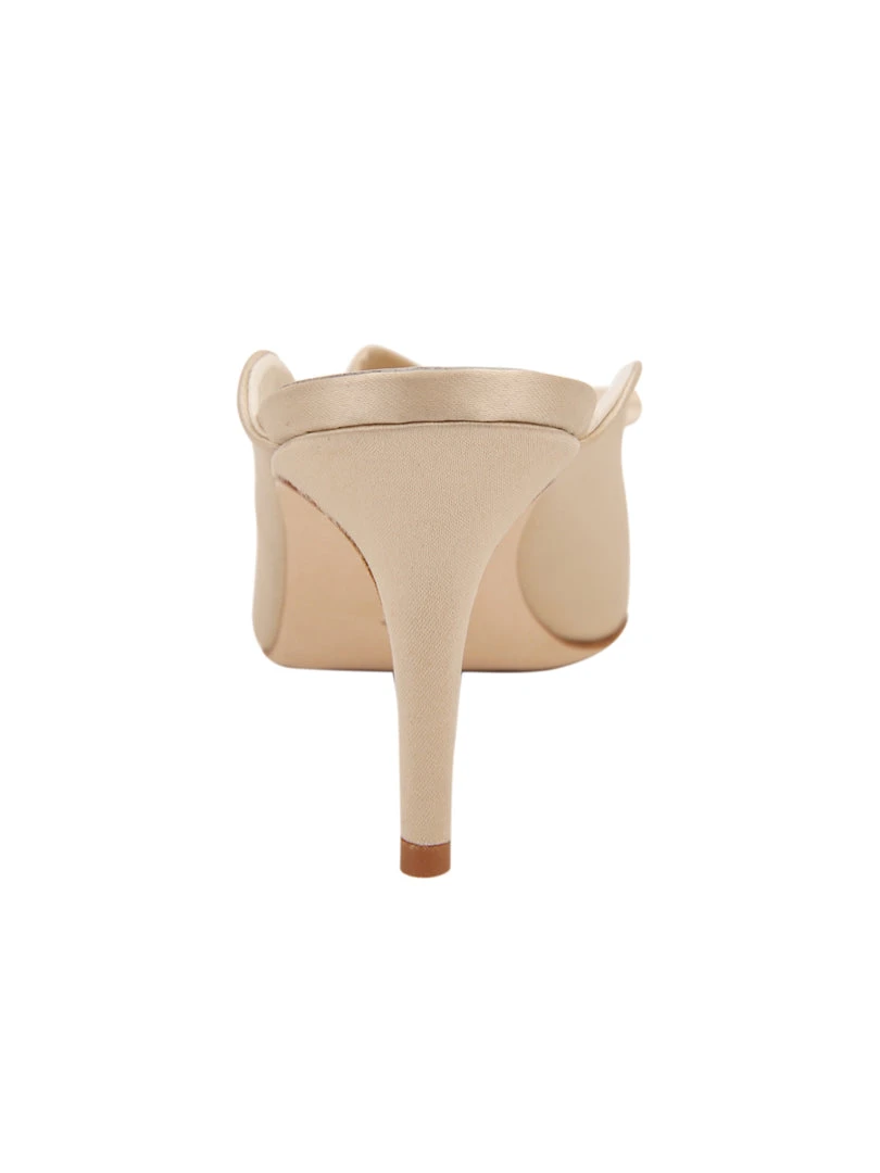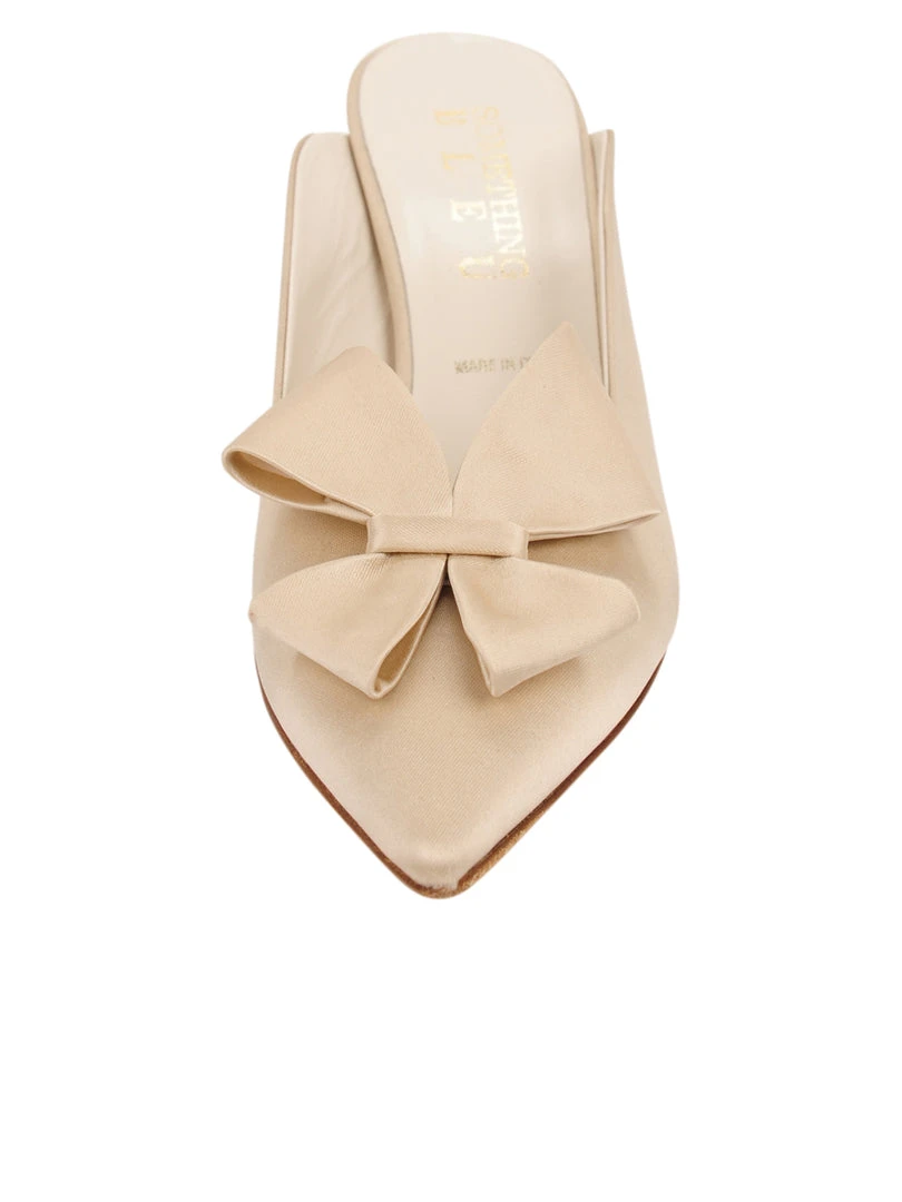 A slip on satin mule with pointed toe and our signature bow. In luxury satin, this pump is a head-turning design.